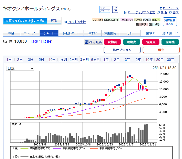 3か月で8倍くらいになってて14000から10000と下がってきました。5000円位なら長期ホールド前提で買ってみたいな。データセンター用のメモリなどは需要ありそうだしありかなぁ