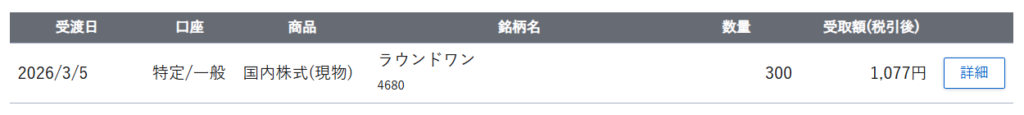 趣味ボウリング用のラウンドワン株からの配当です。